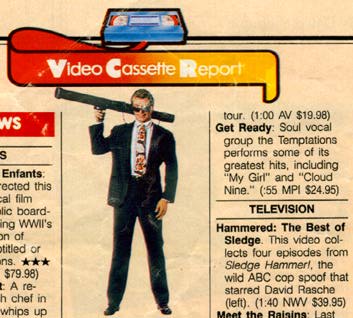 Hammered: The Best of Sledge. This video collects four episodes from Sledge Hammer!, the wild ABC cop spoof that starred David Rasche (left). (1:40 NWV [New World Video] $39.95)