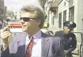 Reporter: We're here at the scene of a liquor store robbery that was thwarted by the man beside me, Inspector Sledge Hammer. Inspector Hammer, tell us what happened.