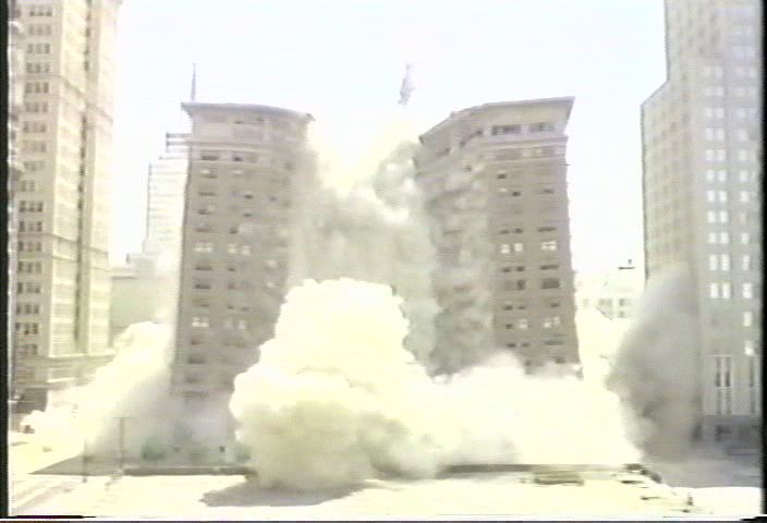 | Note that the building of the stock implosion footage is close but not exactly the same as the original building. |