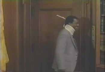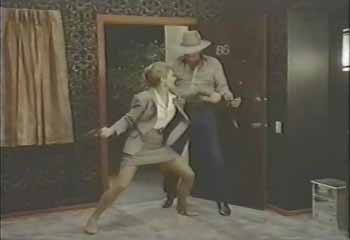 When the mayor is about to light up a cigareette, Hammer pulls out a stick of gum inst ead of his gun. A woman then enters carrying a slide projector and is warmly welcomed by the police chief.