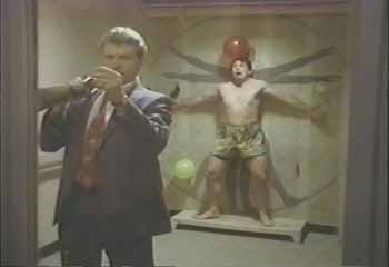 | In the original script, another kidnapper named Cottage Cheese Clodman was supposed to be introduced here. He later pats Doreau down in the abandoned warehouse scene. |