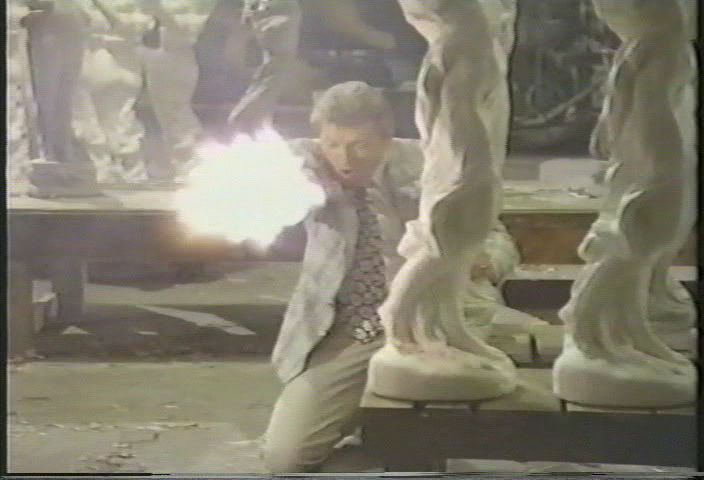 After confirming that the building is evacuated, Hammer tells his gun, "We've got vermin on the roof, but I've got an idea." For the first of many times in the series, a bystander (in this case, the officer will wonder to whom is Hammer talking, and Hammer will shrug and claim it is nobody.